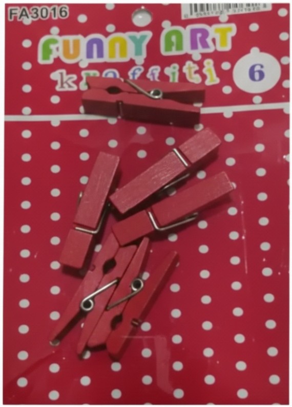 Setul FA3016 include 6 cleștișori decorativi din lemn, roșii, ideali pentru proiecte creative și personalizarea cadourilor. Pot fi folosiți pentru a prinde fotografii pe sfoară decorativă, pentru fixarea etichetelor sau ca elemente de design în diverse activități de lucru manual. Parte din gama Funny Art Kraffiti, acești mini-clești adaugă un aspect rustic și jucăuș decorațiunilor interioare sau școlare.