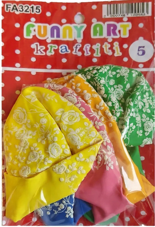 Setul FA3215 conține 5 baloane multicolore în nuanțe vii de galben, roz, verde și albastru, decorate integral cu un imprimeu floral alb, delicat și elegant. Designul rafinat, ce amintește de o grădină înflorită, adaugă prospețime și romantism oricărui eveniment festiv, de la aniversări până la petreceri tematice de primăvară. Versatile și pline de culoare, aceste baloane creează un decor primitor și vesel, oferind un farmec aparte fiecărui colț al locației.