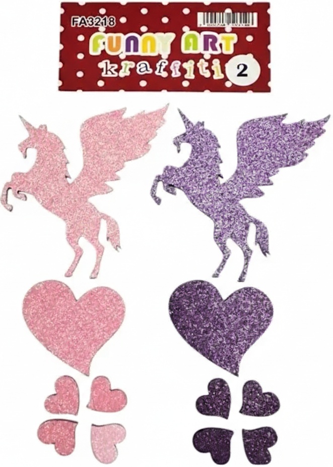 FA3218 este un set ce conține elemente decorative acoperite cu sclipici, în nuanțe magice de roz și mov, având ca tematică figurine fantastice cu unicorni înaripați și inimi. Textura strălucitoare și designul de poveste fac din acest set accesoriul ideal pentru personalizarea cadourilor, a obiectelor de papetărie sau pentru realizarea decorurilor tematice la petrecerile de fetițe. Datorită pieselor de dimensiuni diferite, setul oferă versatilitate în utilizare, adăugând un plus de farmec, textură și magie oricărui proiect creativ.