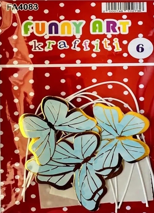 Setul de accesorii FA4083 conține fluturi decorativi mici în nuanțe delicate de albastru, ideali pentru a adăuga un strop de culoare și farmec proiectelor tale de lucru manual. Datorită tijei flexibile, fluturii se pot insera cu ușurință în aranjamente florale, coronițe decorative sau pe ambalaje de cadouri. Designul detaliat și marginile aurii oferă un accent elegant și jucăuș oricărei creații artistice sau decorațiuni pentru evenimente.