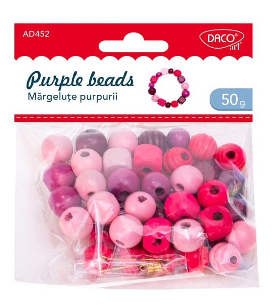 Accesoriile Craft AD452 Mărgeluțe purpurii DACO sunt perfecte pentru a adăuga o notă de eleganță și culoare proiectelor tale de crafting. Acest set conține 50 de grame de mărgeluțe din lemn, în diverse forme și dimensiuni, toate în nuanțe frumoase de purpuriu.
