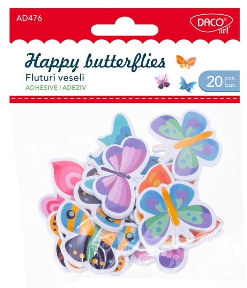 Accesoriile craft "Fluturi veseli" DACOart din spumă autoadezivă sunt o selecție minunată de elemente decorative care aduc o notă ludică și veselă proiectelor tale DIY. Fiecare set conține 20 de fluturași confecționați dintr-o spumă ușoară și autoadezivă, ceea ce face ca aplicarea lor să fie simplă și convenabilă. Acești fluturași sunt disponibili în dimensiuni mixte, ceea ce îți oferă o varietate de opțiuni pentru a-ți personaliza creațiile. Fiecare fluture are un aspect vibrant și plin de culoare, aducând cu sine o notă de bucurie și optimism. Datorită naturii autoadezive a materialului, acești fluturași pot fi aplicați cu ușurință pe o varietate de suprafețe, inclusiv hârtie, carton, sticlă, lemn sau textile, oferindu-ți libertatea de a da viață proiectelor tale creative.