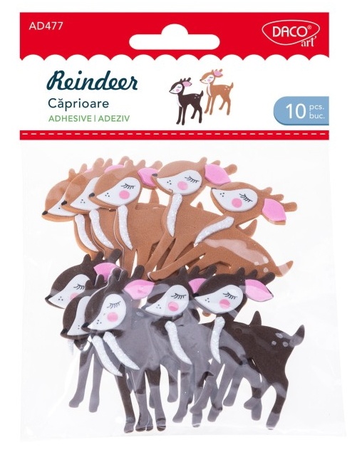 Accesoriile craft "Căprioare" DACOart sunt elemente adorabile și versatile, perfecte pentru proiectele tale creative și DIY. Aceste căprioare sunt confecționate din spumă ușoară și autoadezivă, ceea ce le face extrem de ușor de utilizat și adaugă un farmec aparte și o nota jucăușă proiectelor tale, permițându-ți să creezi decorațiuni, felicitări, ambalaje pentru cadouri și multe alte lucrări personalizate.