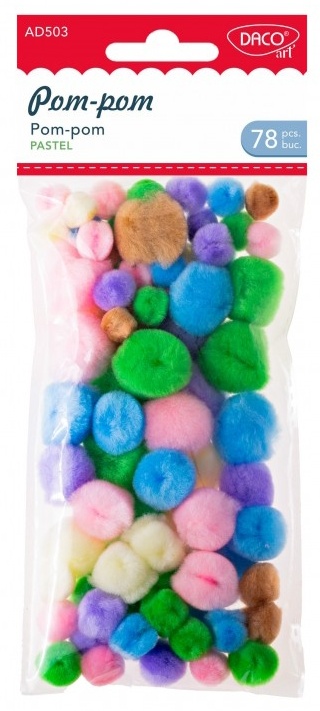 Accesoriile craft AD503 Pom-pom pastel DACO sunt un set minunat și versatil, ideal pentru a adăuga un strop de culoare și textură proiectelor tale creative. Acest set conține 78 de pom-pom-uri în culori pastelate, realizate din material textil și având diametre variate, oferindu-ți o gamă largă de posibilități pentru diverse activități de craft.