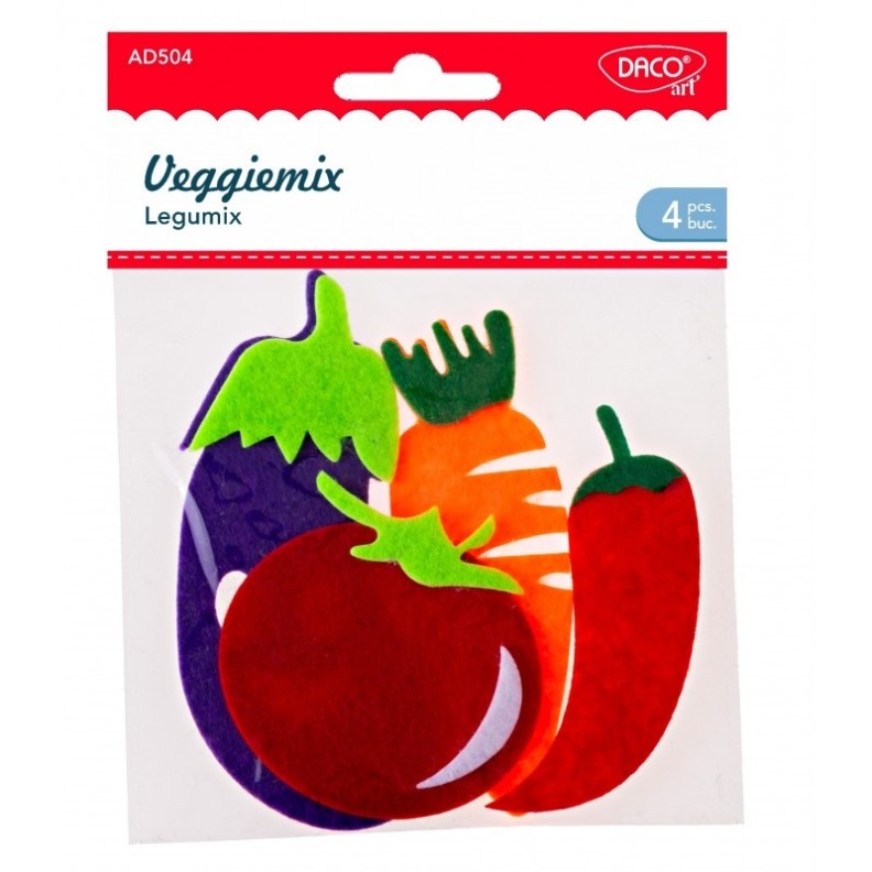 Accesoriile craft AD504 Legumix DACO sunt un set adorabil și educativ, perfect pentru a adăuga un element distractiv și colorat proiectelor tale creative. Acest set conține 4 bucăți de legume realizate din fetru, fiecare având dimensiuni variate, oferindu-ți o bază versatilă pentru diverse activități de craft și învățare.