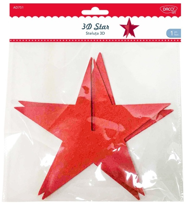Îți propunem un produs care cu siguranță se va integra în decorurile tale de Crăciun! Steluța 3D din fetru va da un plus de culoare casei tale în pragul sărbătorilor de iarnă!