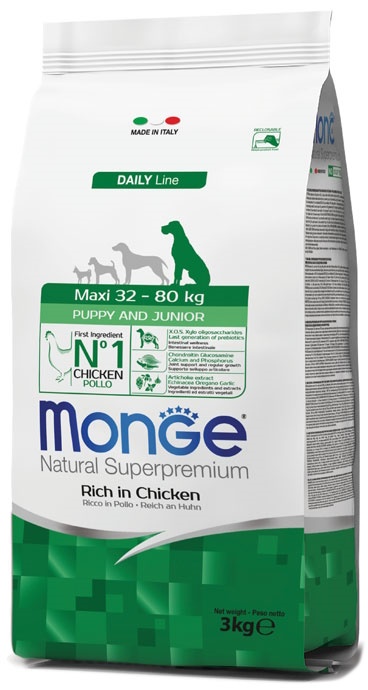 Hrană uscată pentru câini Monge Superpremium Maxi Puppy & Junior Rich in Chicken 3kg