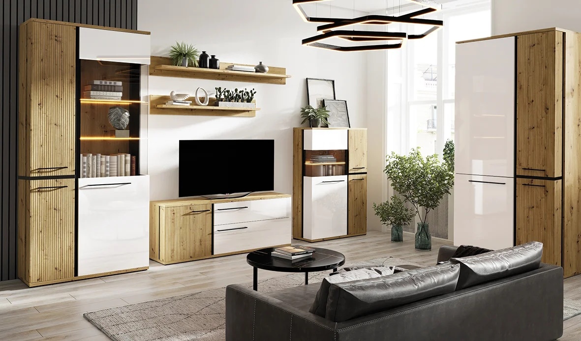 Specificații Comodă Fadome Molto 13 Oak Artisan/Black/White Gloss