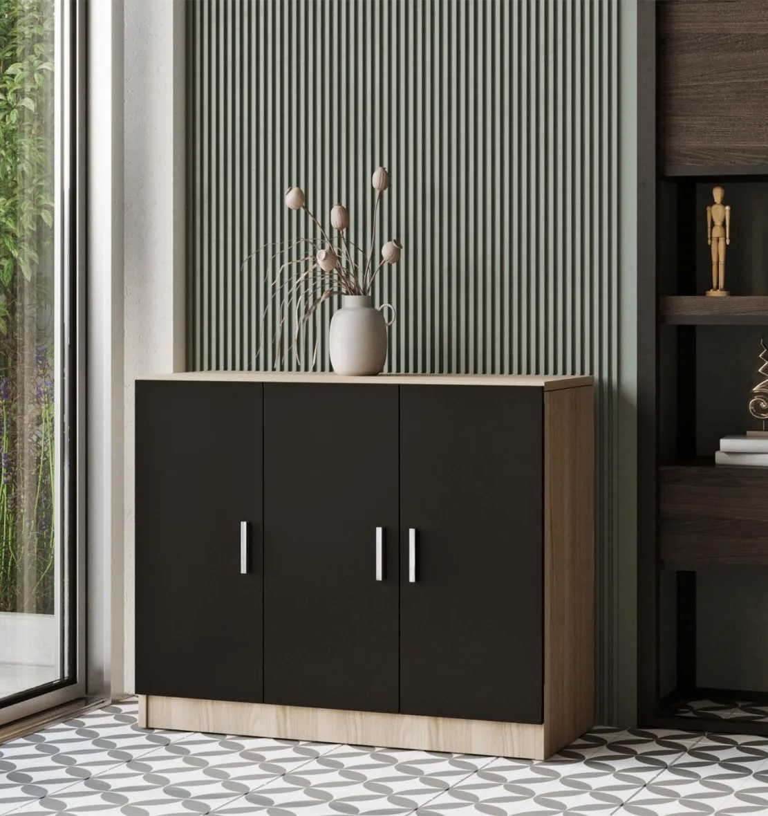 Cu biroul și masa sa spațioasă, veți avea suficient loc pentru a lucra și a vă organiza lucrurile esențiale. Sertarul oferă un spațiu convenabil pentru dosare și papetărie, în timp ce raftul permite expunerea elegantă a cărților și obiectelor decorative. Dulapul și bufetul lateral oferă spațiu suplimentar de depozitare, menținând biroul organizat, iar consola adaugă funcționalitate și stil spațiului de lucru.