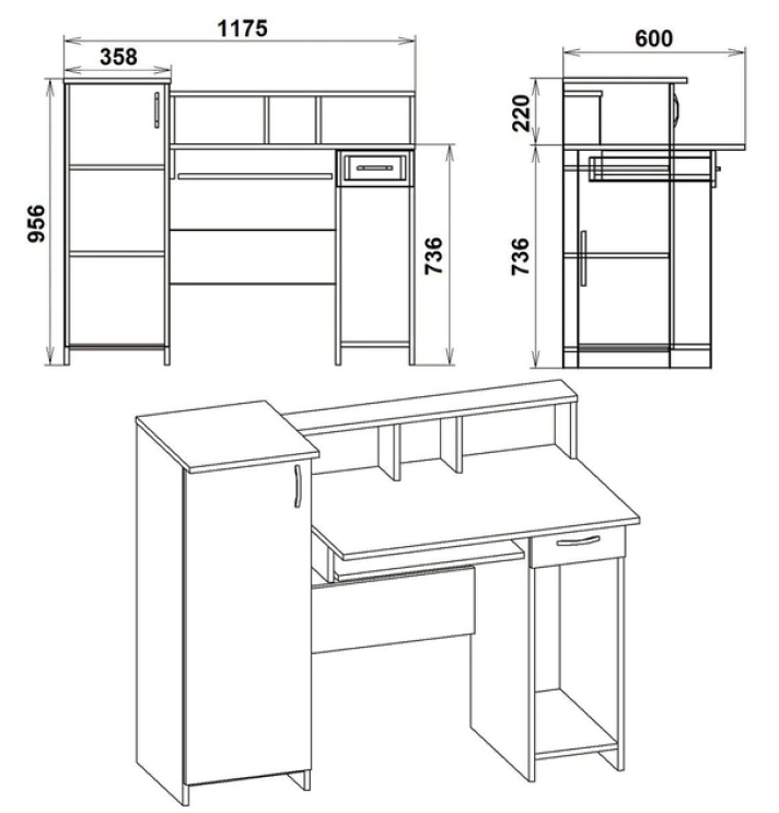 Masa de birou Компанит Пи-Пи-2 Nimfeia Alb