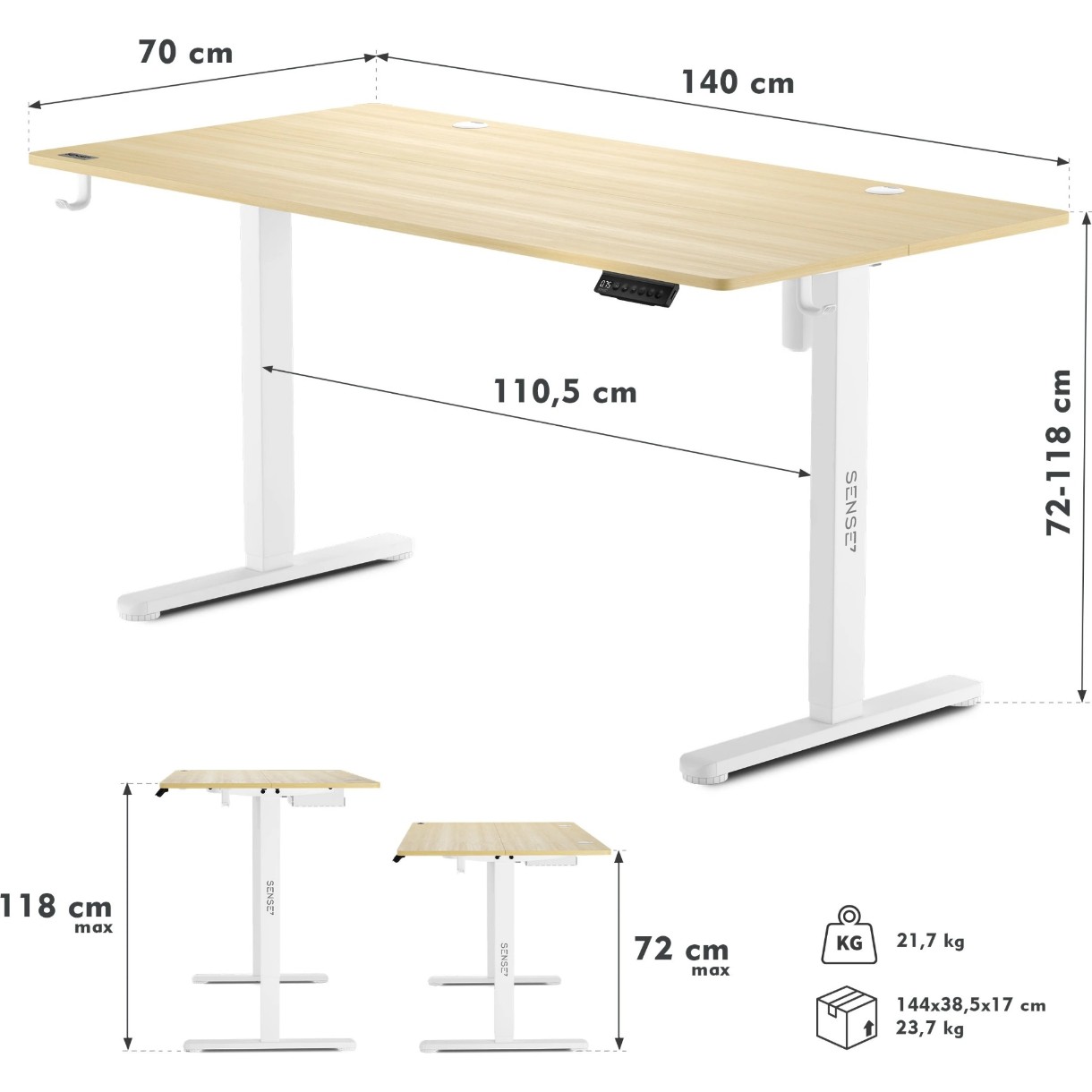 Mecanismul de reglare a înălțimii funcționează silențios în intervalul 72–118 cm.