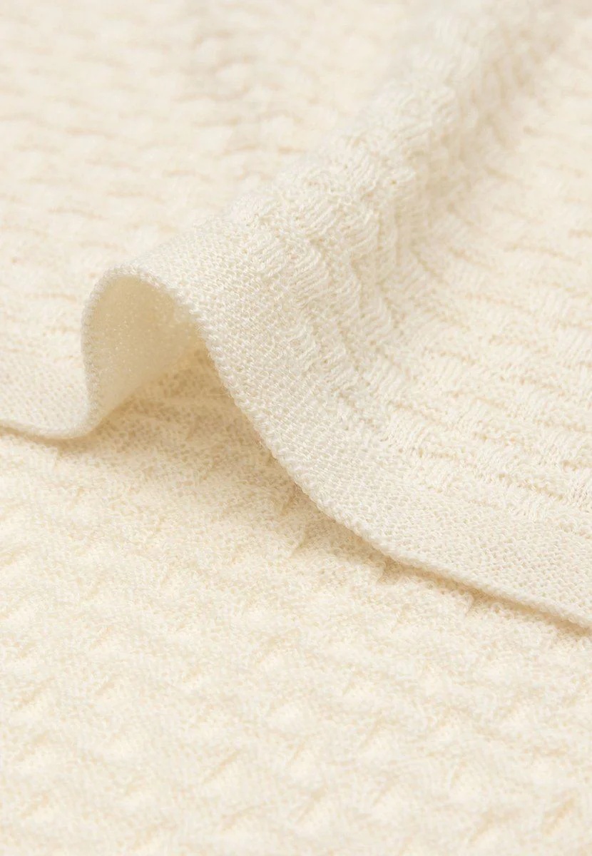 Vise dulci, micuțule!Această pătură tricotată din lână merinos ușoară și respirabilă Weave Knit ii va ține copilului tau de cald si ii va asigura un somn linistit si confortabil