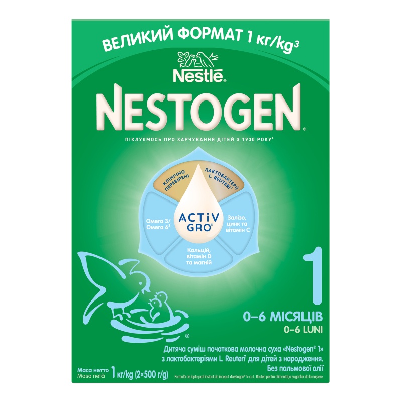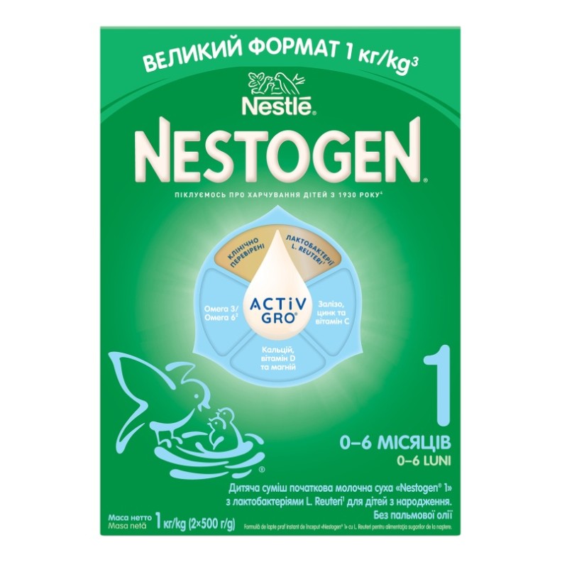 Nestogen 1 este special formulat pentru a asigura o dietă sănătoasă și echilibrată și o digestie confortabilă pentru bebelușul dumneavoastră. Nestogen 1 cu Lactobacillus L. Reuteri ajută la îmbunătățirea motilității intestinale, la formarea de scaune moi și regulate, la o microflora sănătoasă și la reducerea colicilor. Amestecul Nestogen 1 conține, de asemenea, doi acizi grași DHA și ARA, care joacă un rol important în formarea sistemului imunitar și contribuie la dezvoltarea creierului și a vederii bebelușului.
