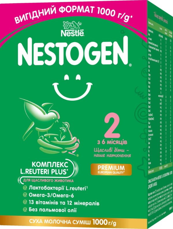 Nestogen 2 este destinat hrănirii bebelușilor sănătoși începând cu vârsta de 6 luni și reprezintă o componentă pe bază de lapte a alimentației bebelușului atunci când alăptarea nu este posibilă. Nu trebuie utilizat ca substitut al laptelui matern în primele 6 luni de viață ale bebelușului. Nestogen 2 cu Lactobacillus L. Reuteri ajută la îmbunătățirea motilității intestinale, la formarea de scaune moi și regulate și la formarea unei microflore sănătoase.