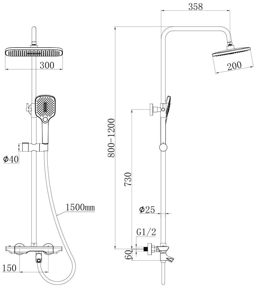 Dimensiunile dus stationar300х200 mm