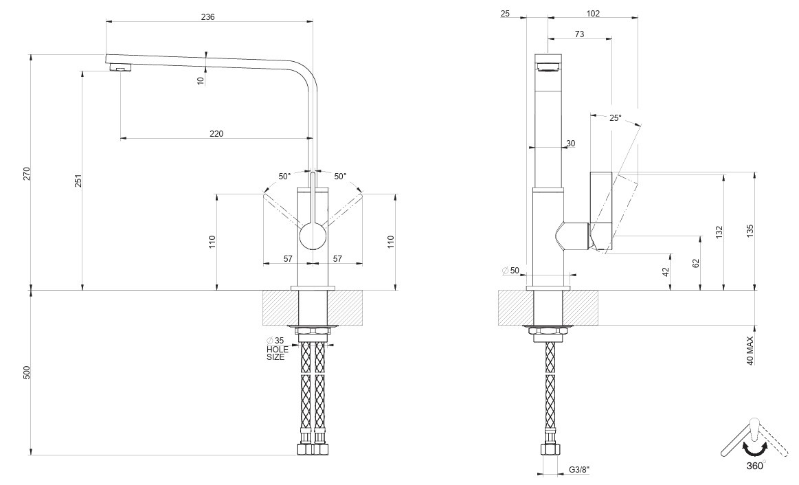 Înălțime pipă251 mm