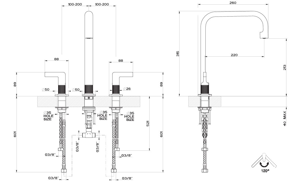 Unghiul de rotaţie120 °