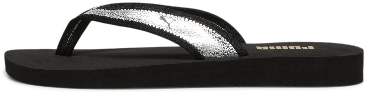 Cu curele subțiri din neopren, amortizare excelentă și tracțiune bună prin utilizarea unei tălpi ușoare din EVA, șlapii Puma Sandy Flip Metallic Shine sunt perfecți pentru cei care caută stil și adoră să se distreze la soare.