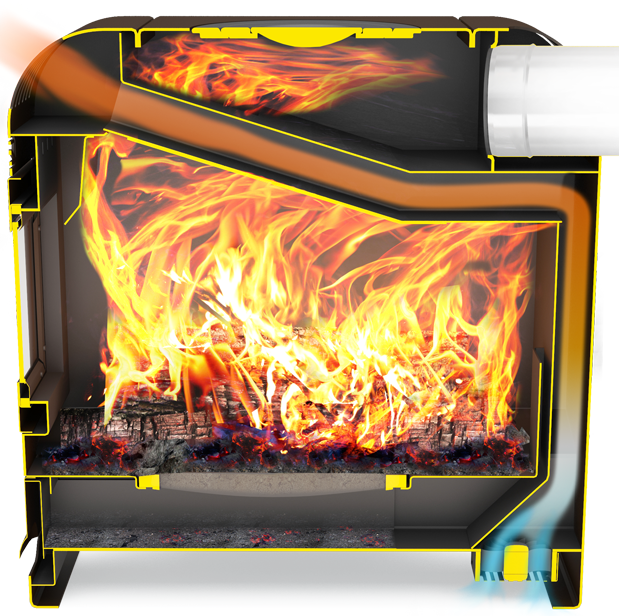 În plusVentilator puternic puternic, Mod de ardere lungă, Convectoare laterale cu sistem de evacuare a fumului, Sistem de evacuare a fumului eficient, Ușă cu sticlă rezistentă la căldură, Bucătărie cu inele din fontă