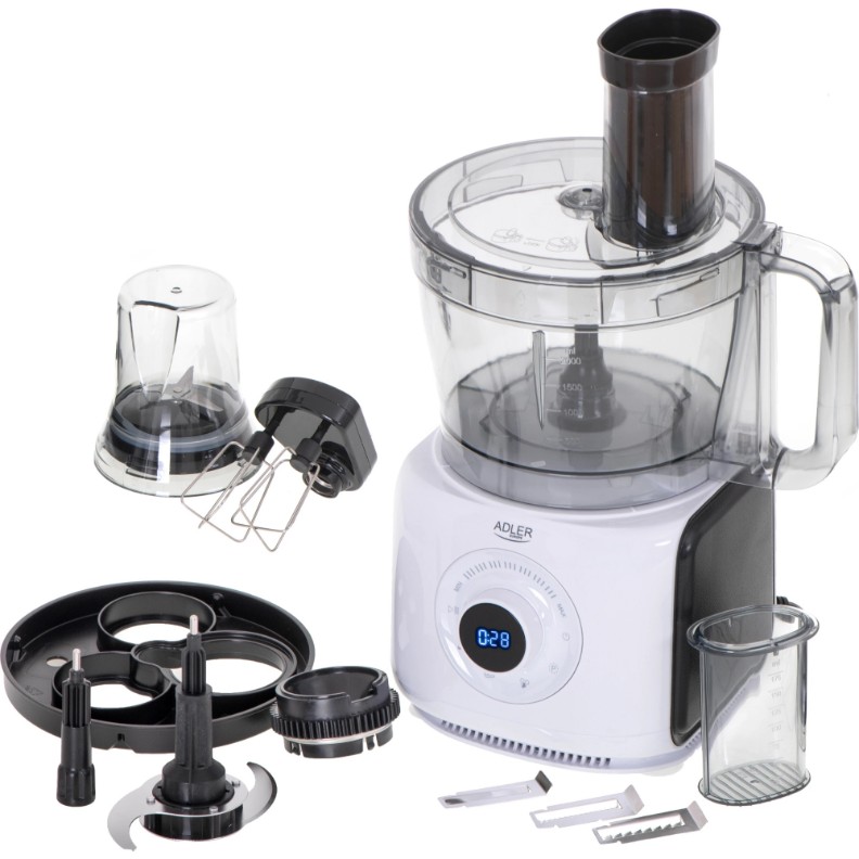 Dacă căutați echipamente de bucătărie care să vă ajute să pregătiți preparate rapid și eficient, nu căutați mai departe! Procesorul de alimente AD 4224 de 1000 W este un dispozitiv care vă va schimba stilul de gătit pentru totdeauna. Dispozitivul, care ascunde mai multe funcții diferite, ajută la pregătirea chiar și a preparatelor foarte sofisticate într-un mod eficient și rapid. Robotul nostru are un LCD, care este într-un loc vizibil și vă permite să controlați activitatea dispozitivului. Există șapte viteze pentru selecția manuală. Puteți toca sau amesteca atât ingrediente mai delicate, cât și mai puțin delicate. În plus, puteți folosi patru programe automate, grație cărora puteți pregăti un cocktail smoothie, toca carne, zdrobi gheață sau pasa legume sau fructe delicate într-un sos cu funcția de puls. Programele disponibile rapid înseamnă că un singur procesor de alimente vă va ajuta să pregătiți un prânz, o cină sau un mic dejun întreg. O bol cu o capacitate de 2 (lichide) până la 3,5 litri (produse uscate) este suficientă pentru un sos, un cocktail sau un tort de clătite pentru toată familia.