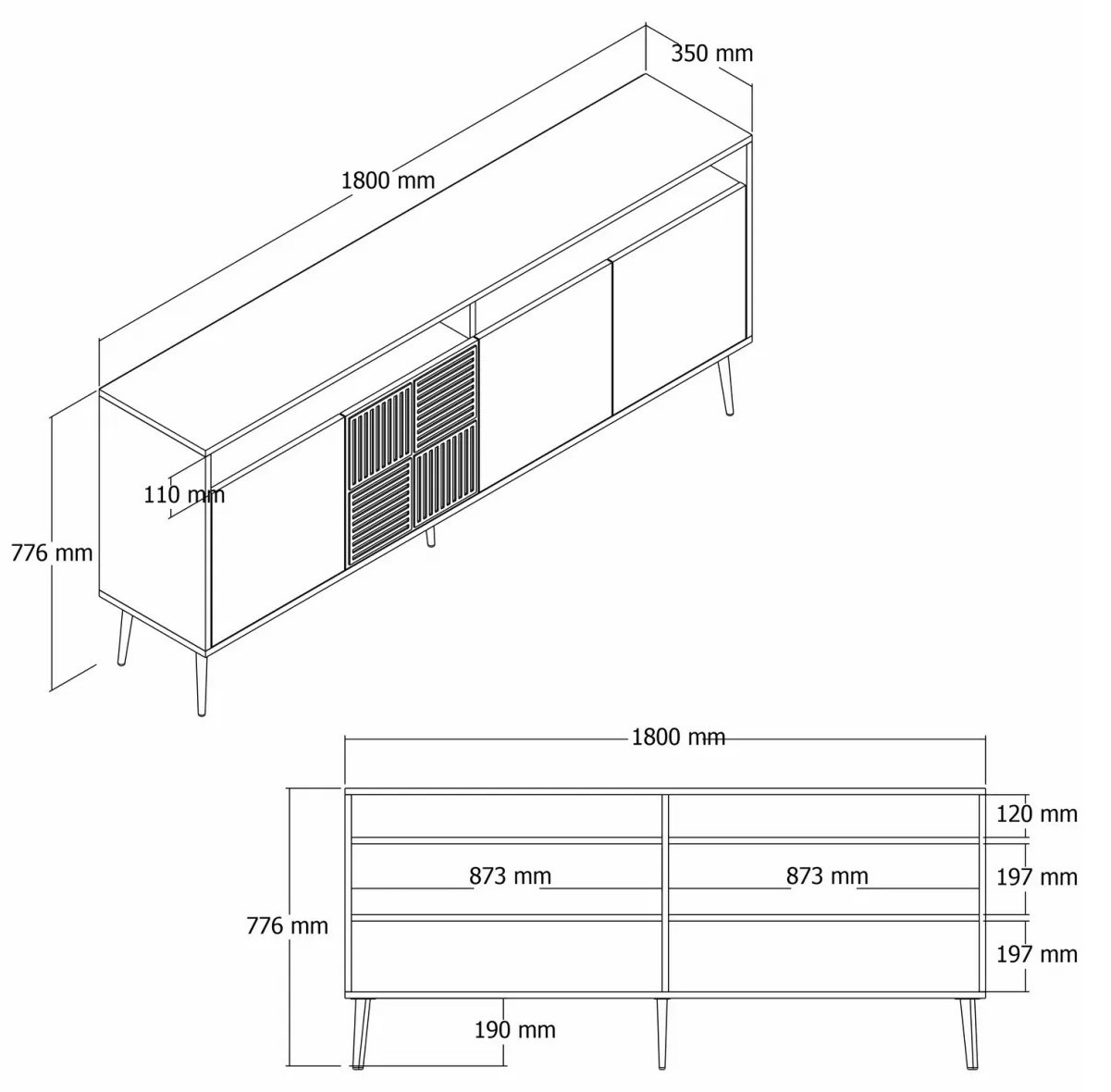 Această consolă nu numai că emană eleganță, dar oferă și practicitate și versatilitate. Dimensiunile sale generoase de 180 cm în lățime, 77 cm în înălțime și 35 cm în adâncime oferă un spațiu amplu de depozitare pentru bunurile dvs., menținând zona dvs. de locuit organizată și fără dezordine.