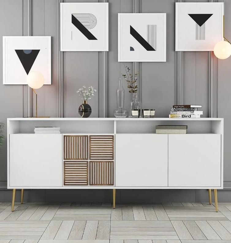 Cu designul său elegant și combinația impecabilă de alb și auriu, această consolă emană o aură de opulență și grandoare. Prezența sa captivantă va transforma fără efort orice spațiu într-un sanctuar de lux și stil.