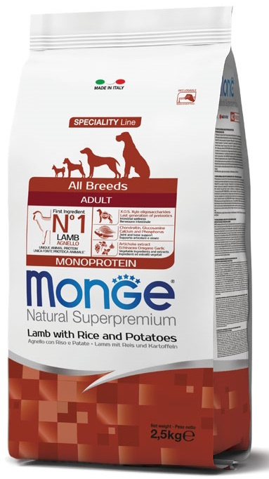 Hrană uscată pentru câini Monge Superpremium Mini Adult Lamb/Rice/Potatoes 2.5kg