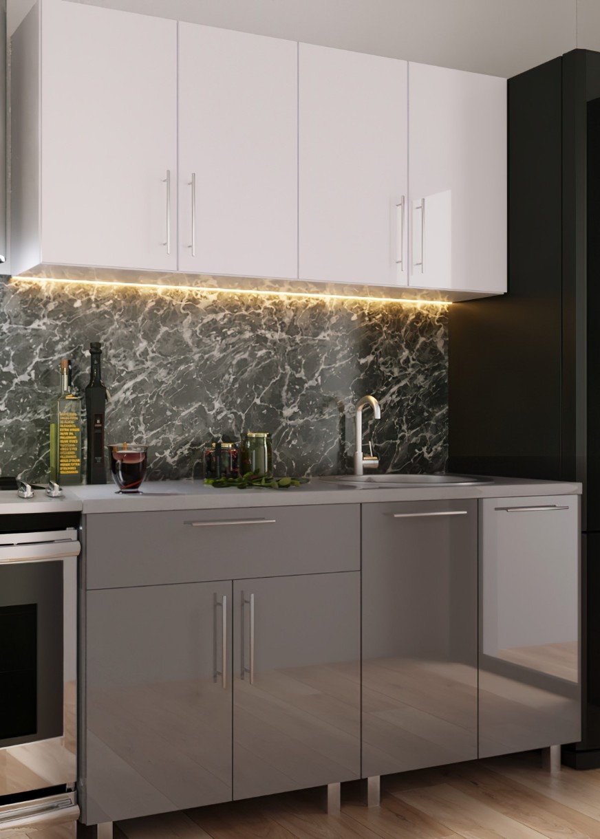 Bucătărie Bafimob Mini (High Gloss) 1.6m White/Grey