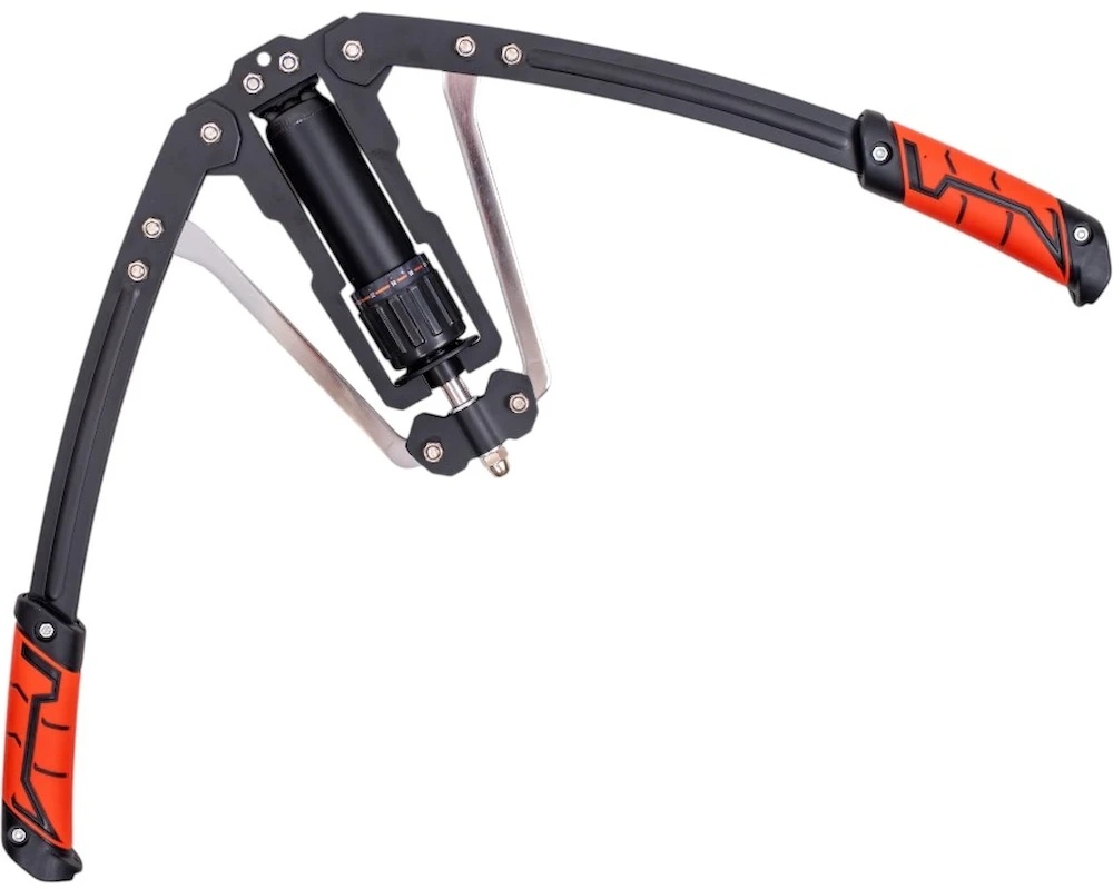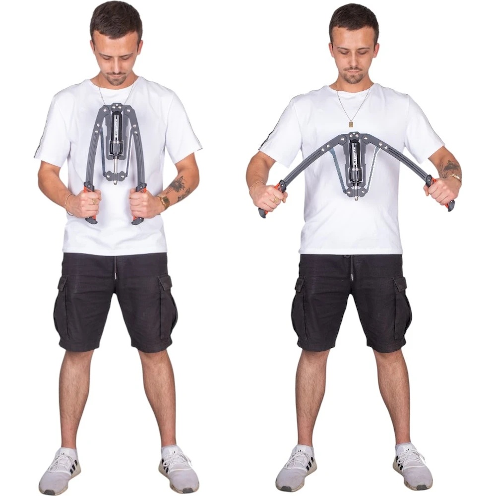 Construcția robustă din oțel carbon, pistonul hidraulic funcționează lin și fiabil, și chiar și după mii de repetări nu își pierde puterea. Mânerele ergonomice și antiderapante asigură o prindere confortabilă. Iar după antrenament? Pur și simplu agățați aparatul de bucla de la capăt.