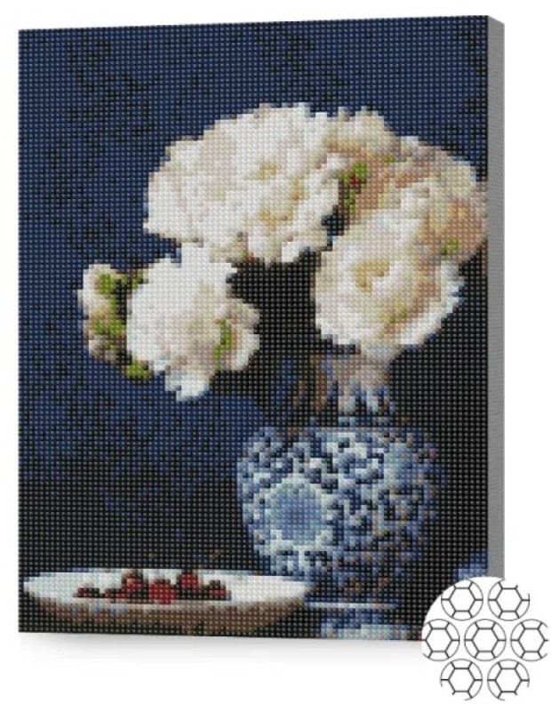 Pictura cu diamante după numere Art Gallery Premium Bujori pe fundal albastru 30x40cm (XQB76059)