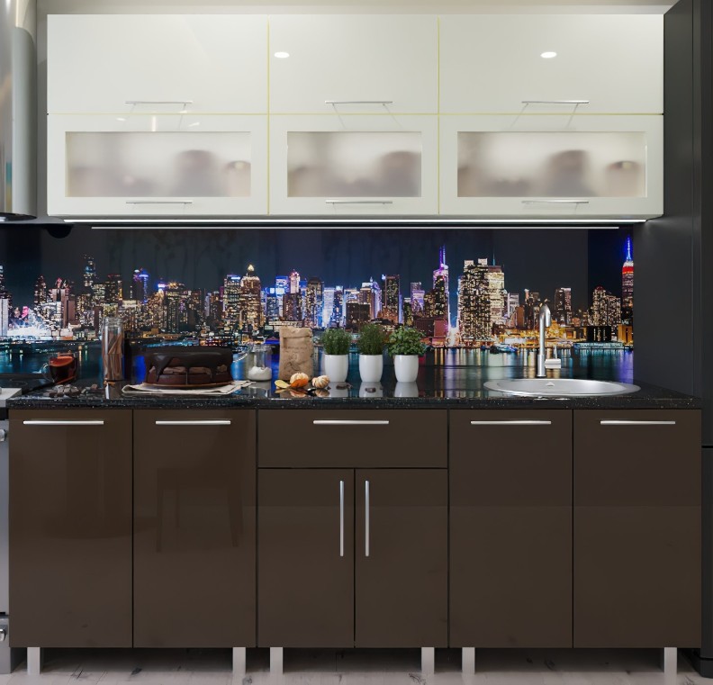 Bucătărie Bafimob Modern (High Gloss) 2.2m glass Brown/Beige