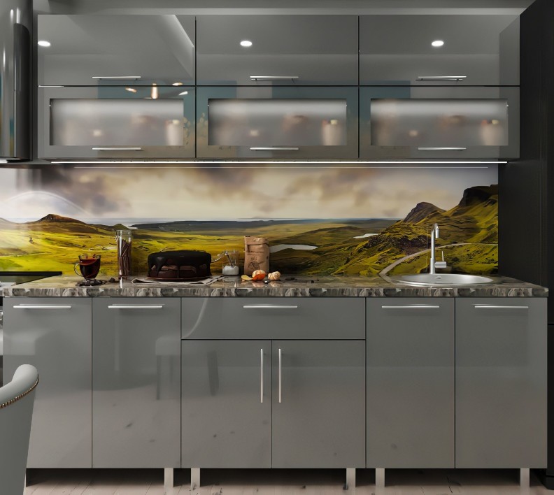 Bucătărie Bafimob Modern (High Gloss) 2.4m glass Grey