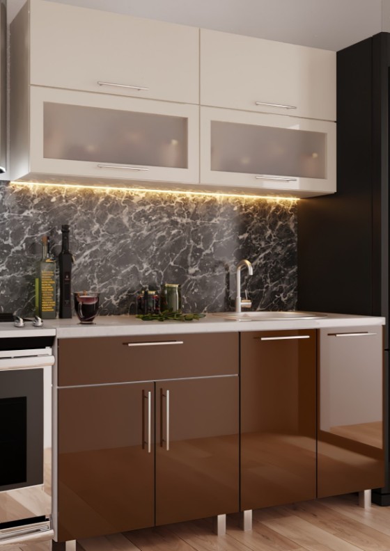 Bucătărie Bafimob Modern (High Gloss) Mini 1.2m Beige/Brown