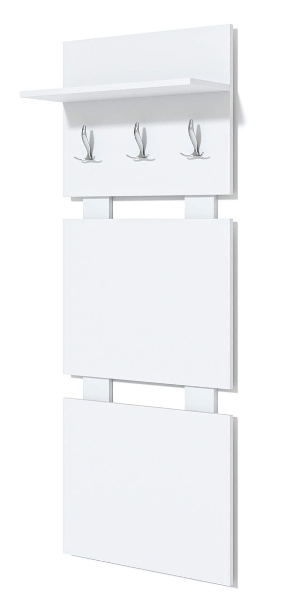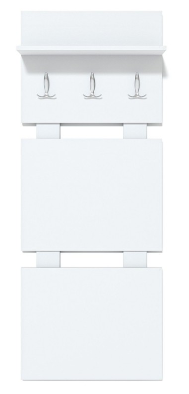 Cuierul vă permite să așezați haine de sezon pentru întreaga familie. Este format din 3 panouri conectate prin șine verticale. Raftul montat deasupra cârligelor pentru haine este conceput special pentru pălării și umbrele. Sarcina maximă de pe raft este de 5 kg. Poate fi un element independent sau poate fi folosit într-un ansamblu cu un suport pentru încălțăminte din sistem.