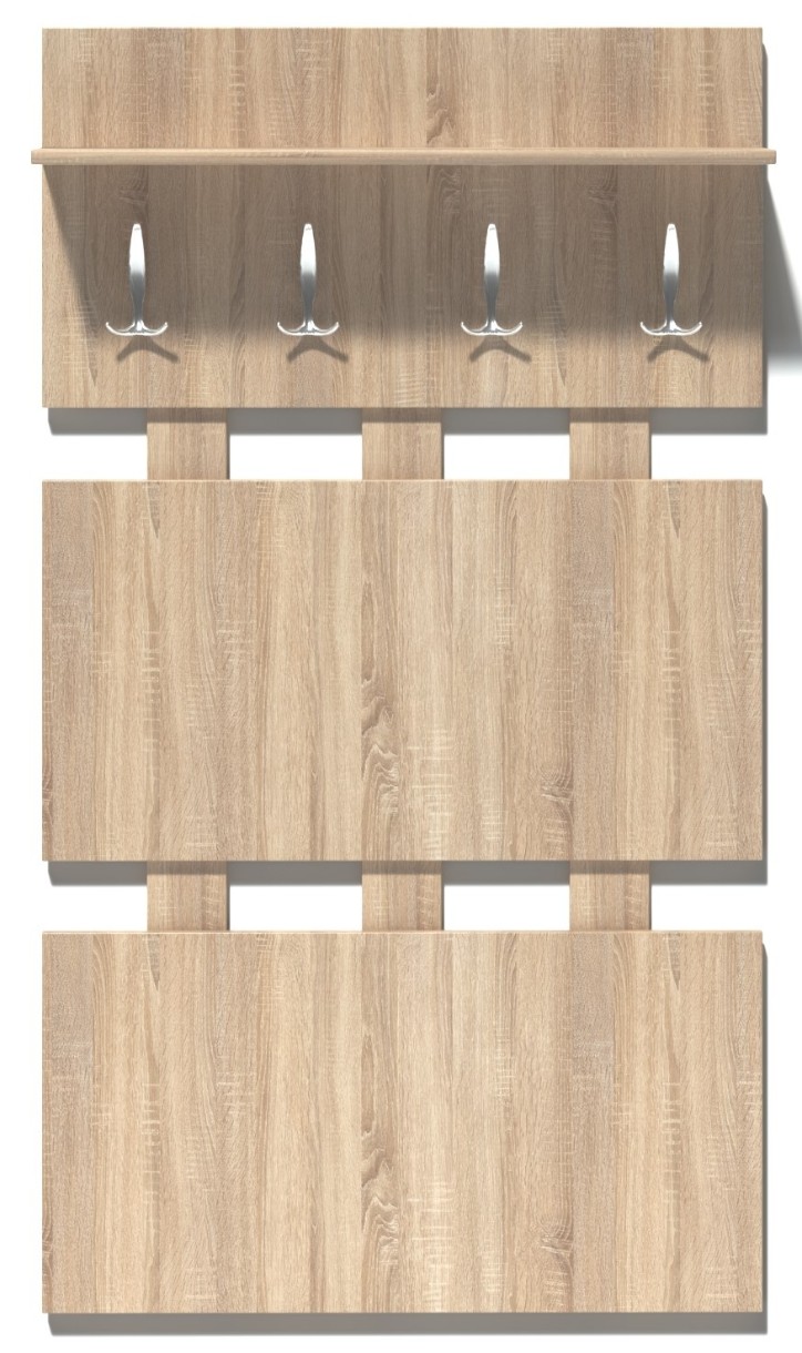 Cuierul vă permite să așezați haine de sezon pentru întreaga familie. Este format din 3 panouri conectate prin șine verticale. Raftul montat deasupra cârligelor pentru haine este conceput special pentru pălării și umbrele. Sarcina maximă de pe raft este de 5 kg. Poate fi un element independent sau poate fi folosit într-un ansamblu cu un suport pentru încălțăminte din sistem.