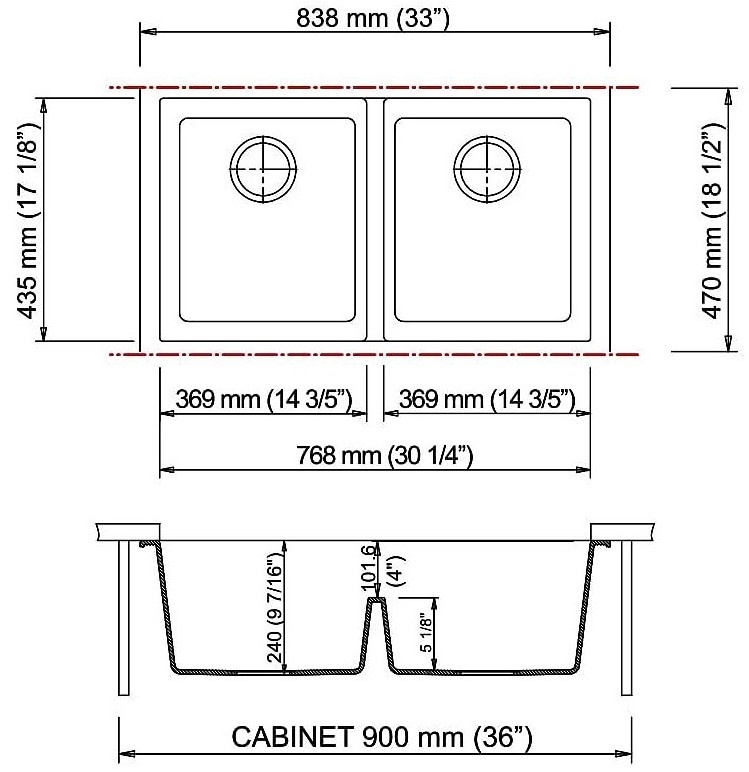 Dimensiuni cuvă auxiliară435х369 mm