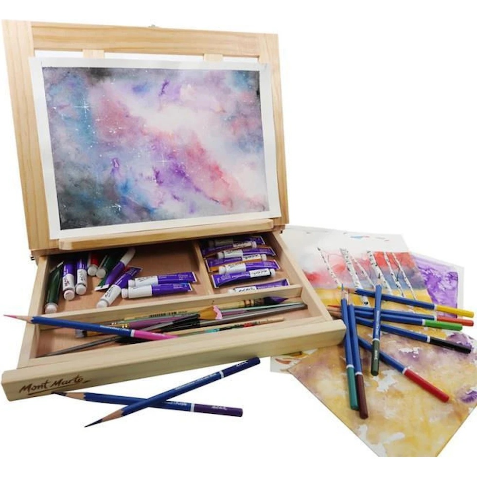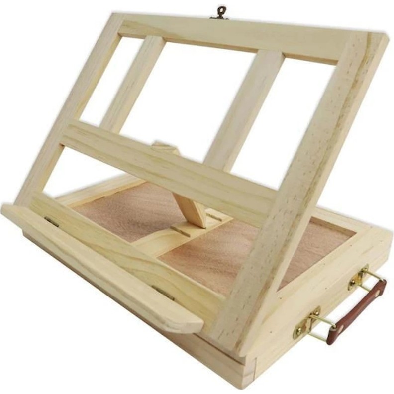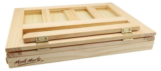 Șevaletul de masă Table Easel de la Mont Marte este un șevalet funcțional, cu un suport reglabil pentru pânză și un sertar spațios pentru accesorii. Se pliază pentru o depozitare comodă și are un mâner practic pentru transport. Poate susține o pânză cu înălțimea de aproximativ 40 cm. Este realizat din lemn de pin tratat manual cu ulei și are accesorii din oțel cu finisaj din alamă.