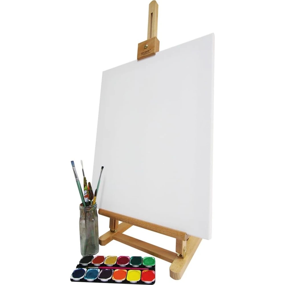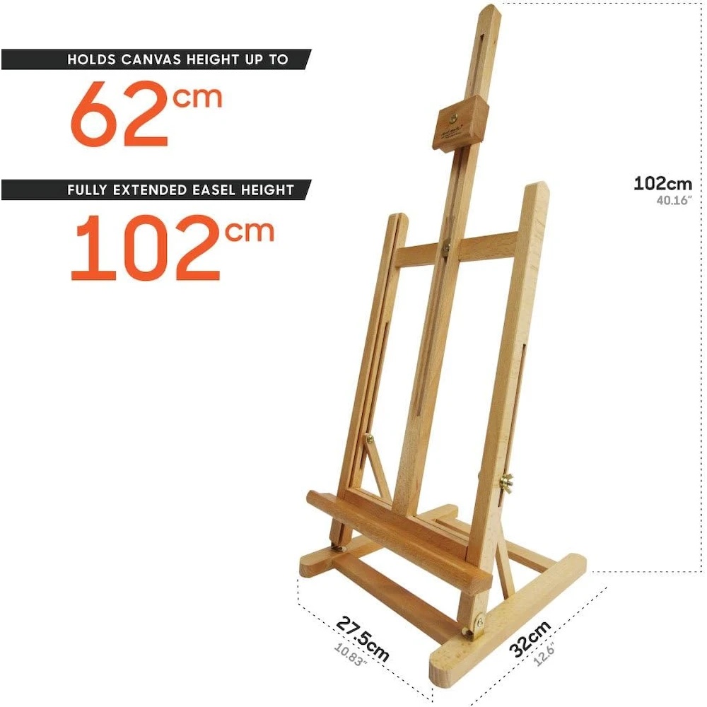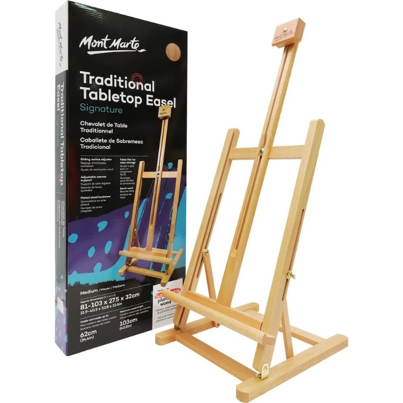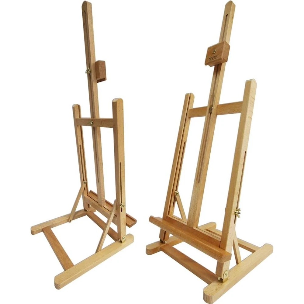 Șevaletul este conceput pentru a fi utilizat pe masă și poate fi folosit atât stând în picioare, cât și așezat la birou. Este o alegere ideală dacă nu aveți suficient spațiu pentru un șevalet mai mare. Înălțimea și unghiul de înclinare se reglează ușor cu ajutorul șuruburilor tip fluture. Potrivit pentru pictură sau demonstrații. Se pliază compact pentru depozitare convenabilă.