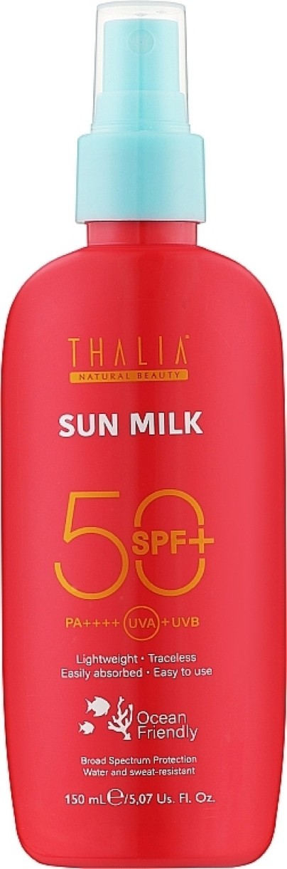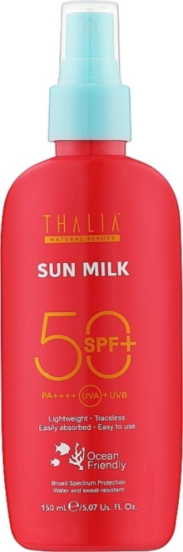 Lotiunea de plajă Thalia oferă o protecție foarte ridicată împotriva razelor ultraviolete, SPF 50. Textura sa ușoară se întinde uniform pe piele și se absoarbe rapid, fără senzație de greutate, uleiozitate sau urme albe. Uleiul esențial de portocală din compoziție calmează pielea, o înmoaie și ajută la reducerea inflamației. Produsul nu conține substanțe dăunătoare sănătății.