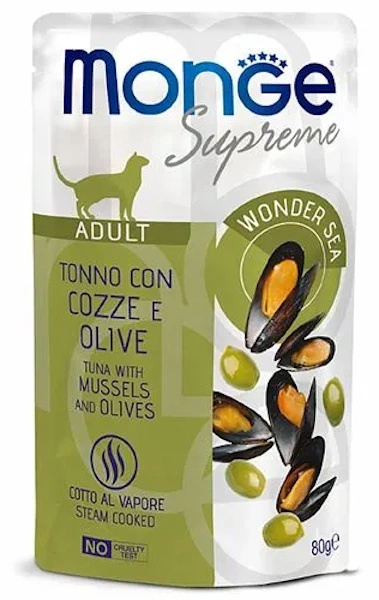 Hrană umedă pentru pisici Monge Supreme Adult Tuna/Mussel/Olive 80g