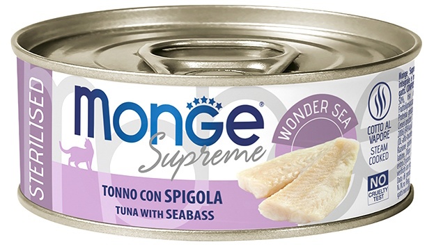 Hrană umedă pentru pisici Monge Supreme Sterilised Tuna/Seabass 80g