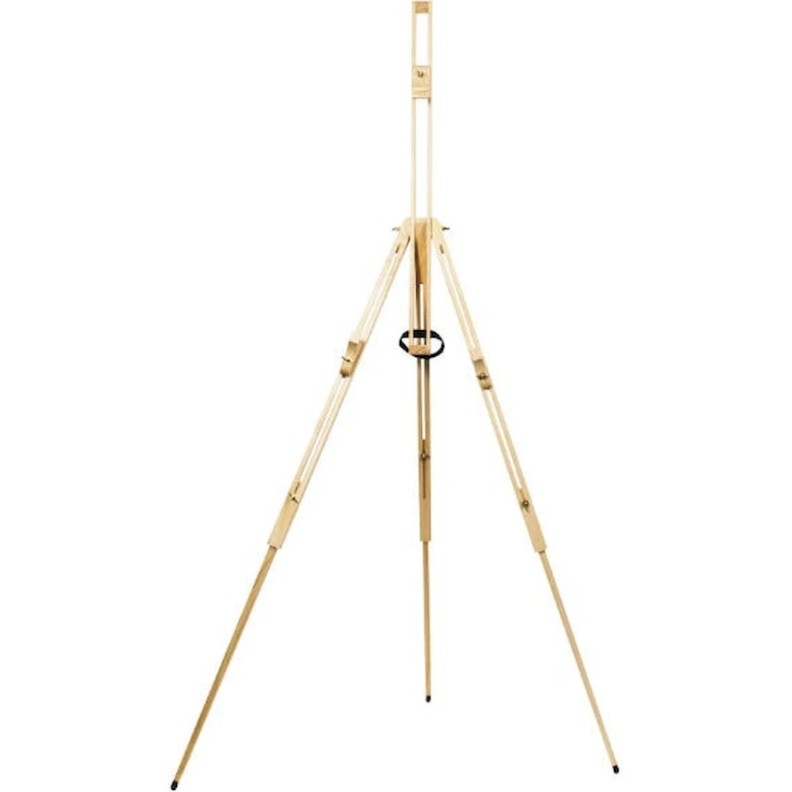 Acesta este un șevalet funcțional cu picioare telescopice pentru reglarea comodă a înălțimii și o secțiune centrală pivotantă, care poate fi înclinată pentru a obține unghiul de lucru optim. Șevaletul este fabricat din lemn, cu accesorii din alamă și oțel.