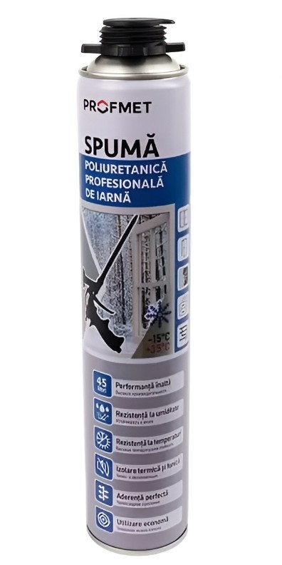 Spuma profesională pentru montaj pe timp de iarnă este un material de construcție specializat, conceput pentru utilizare la temperaturi scăzute. Umple eficient golurile, crăpăturile și cavitățile, oferind o etanșare termică și fonică fiabilă. Spuma își menține proprietățile chiar și la temperaturi de până la -15°C, fiind ideală atât pentru lucrări exterioare, cât și interioare în timpul sezonului rece. Formula este concepută pentru utilizare profesională, asigurând o aderență puternică la majoritatea materialelor de construcție, inclusiv lemn, beton, metal și plastic.