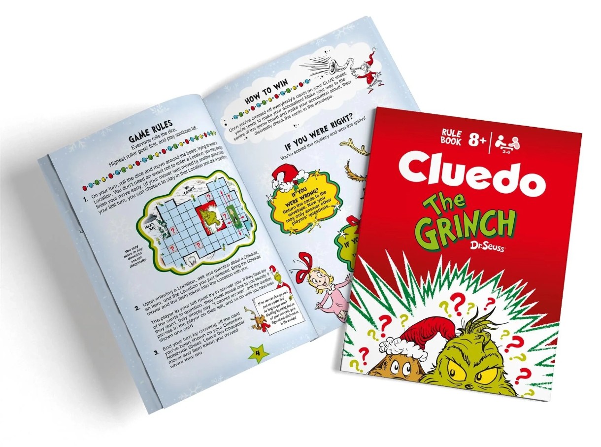 Dezvăluie-ți spiritul de detectiv cu jocul clasic de societate Cluedo: The Grinch Edition! Pornește într-o aventură captivantă alături de personaje îndrăgite – Mama Who, Cindy Lou Who și Papa Who. Explorează locații emblematice precum Patul lui Max sau Piața Centrală, adună indicii și rezolvă misterul: cine a făcut-o, unde s-a întâmplat și cu ce obiect?