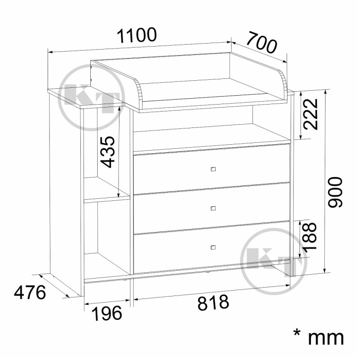 Dimensiuni loc de înfășat110x70 cm