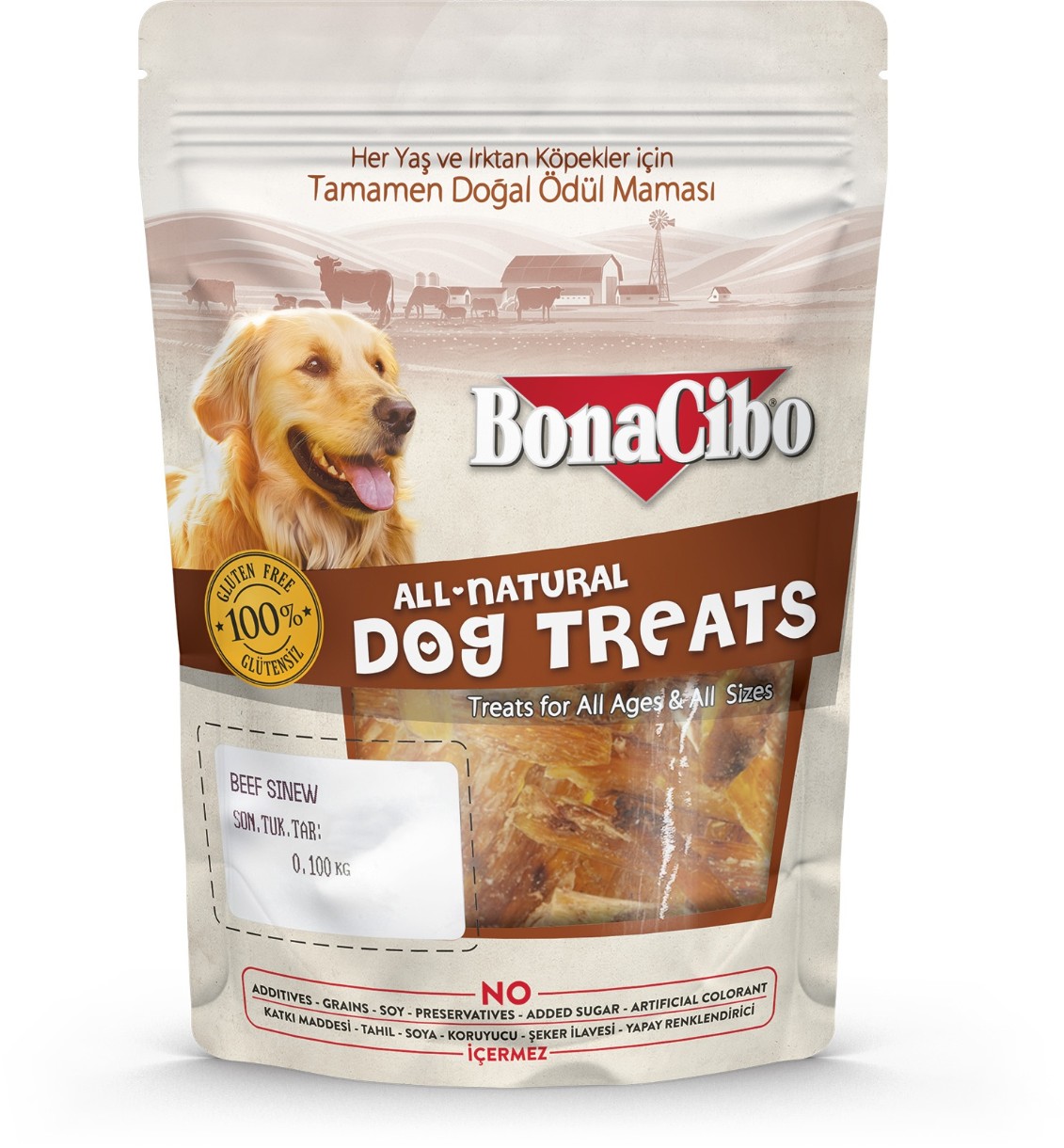 Snackuri pentru câini BonaCibo Beef Sinew 100g