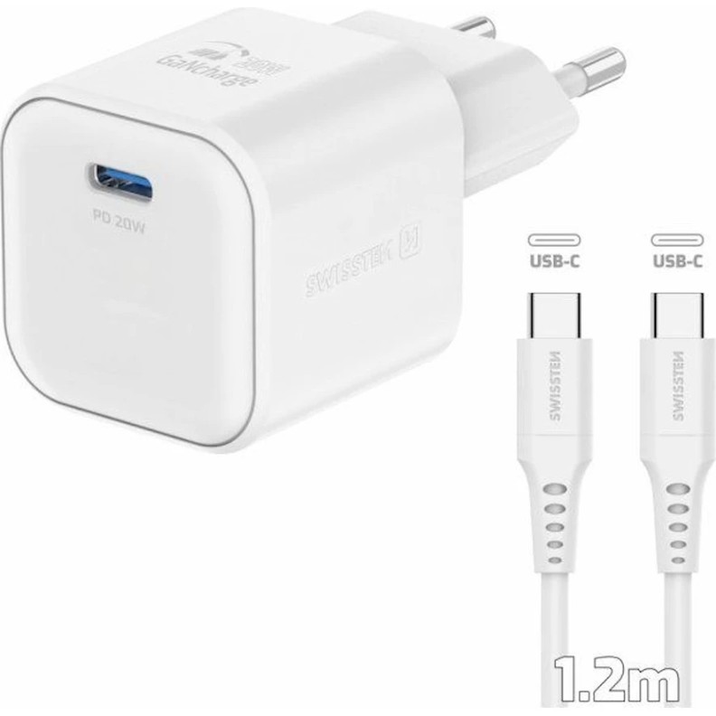 Încărcător Swissten GaN USB-C + Cable USB-C/USB-C 1.2m White