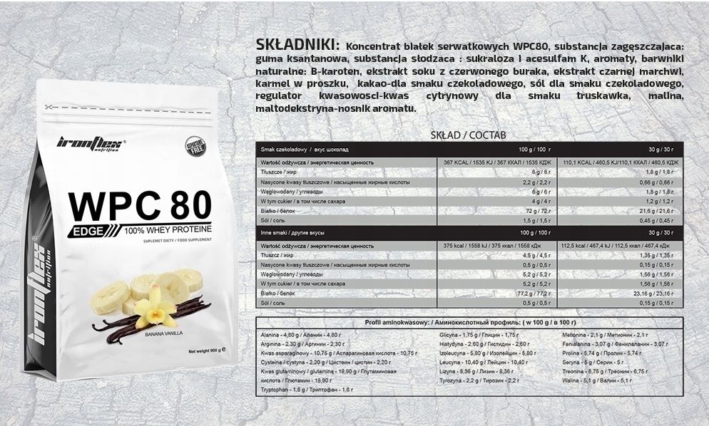Proteină IronFlex WPC80 EDGE Banana Vanilla 909g