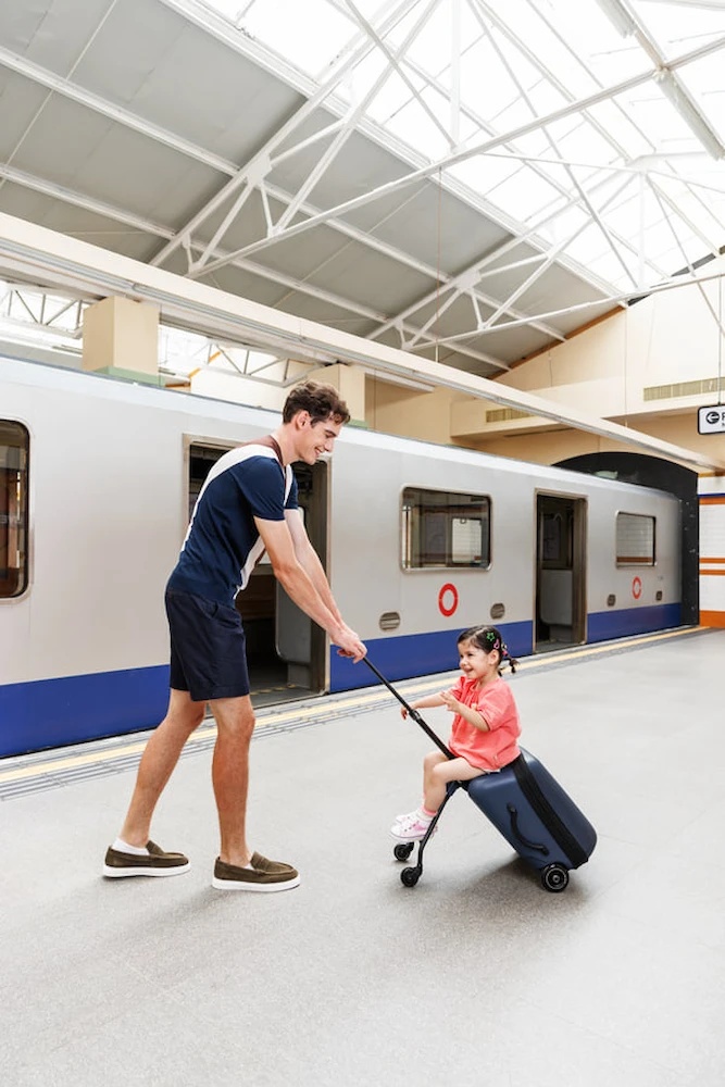 Micro Ride On Luggage Eazy Weekender – trollerul inteligent care face călătoriile cu copiii mai ușoare ca niciodată! Echipat cu un scaun integrat pentru copii, permite celui mic să călătorească confortabil, eliminând necesitatea unui cărucior. Acest troller elegant, proiectat în Elveția, este realizat din materiale de înaltă calitate, se deplasează lin și silențios și este perfect atât pentru excursii în familie, cât și pentru cumpărături.