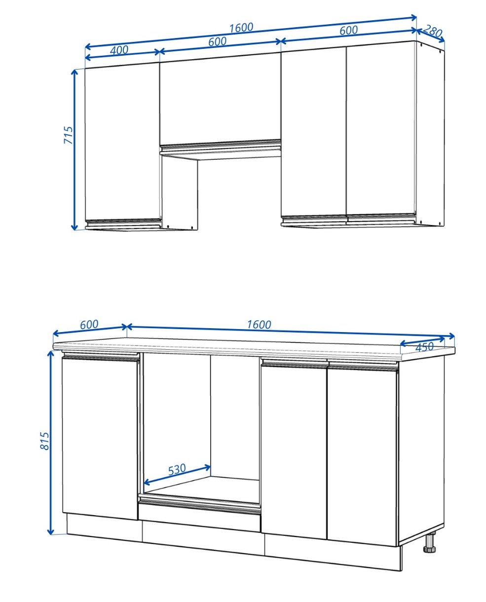 - Dulap inferior H№ 12 (pentru cuptor): 600х815х530 mm